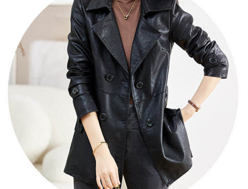 ◎レディース レザー 本革ダブルジャケット ロング4つ釦 つげ村shop