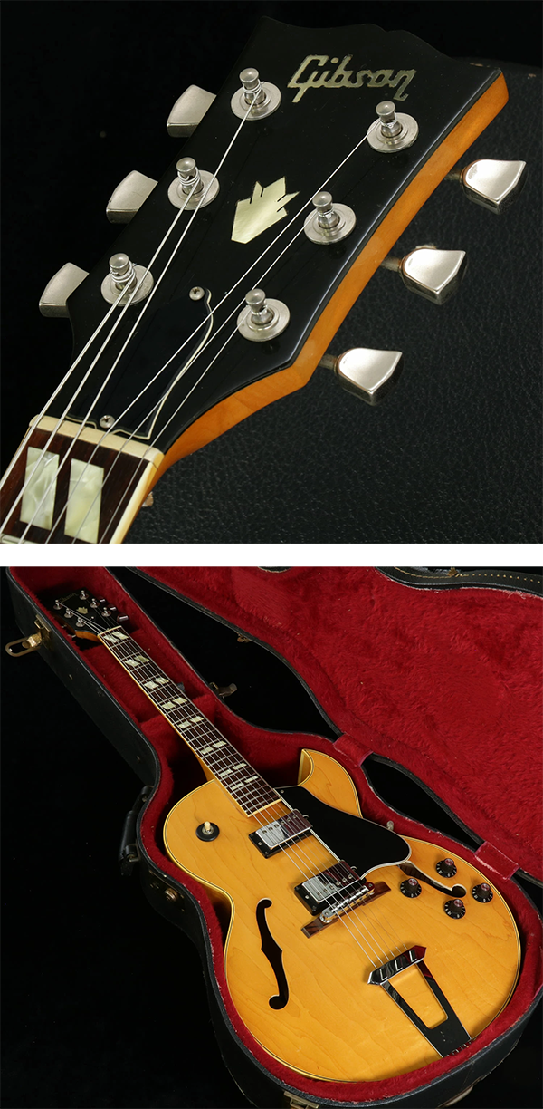 - 多くのアーテイストに愛用されるフルアコの代名詞・ギブソン・ES-175D、メイプル/ポプラ/メイプル・トップ&サイド&バック、3ピースのボリュート付きメイプル・ネック、ローズ指板、PUは刻印ナンバードx2を搭載し、ナッシュビル・ブリッジ仕様になっています。