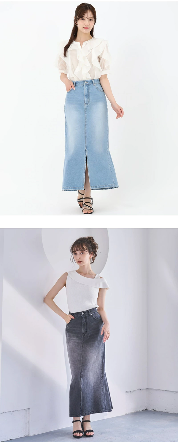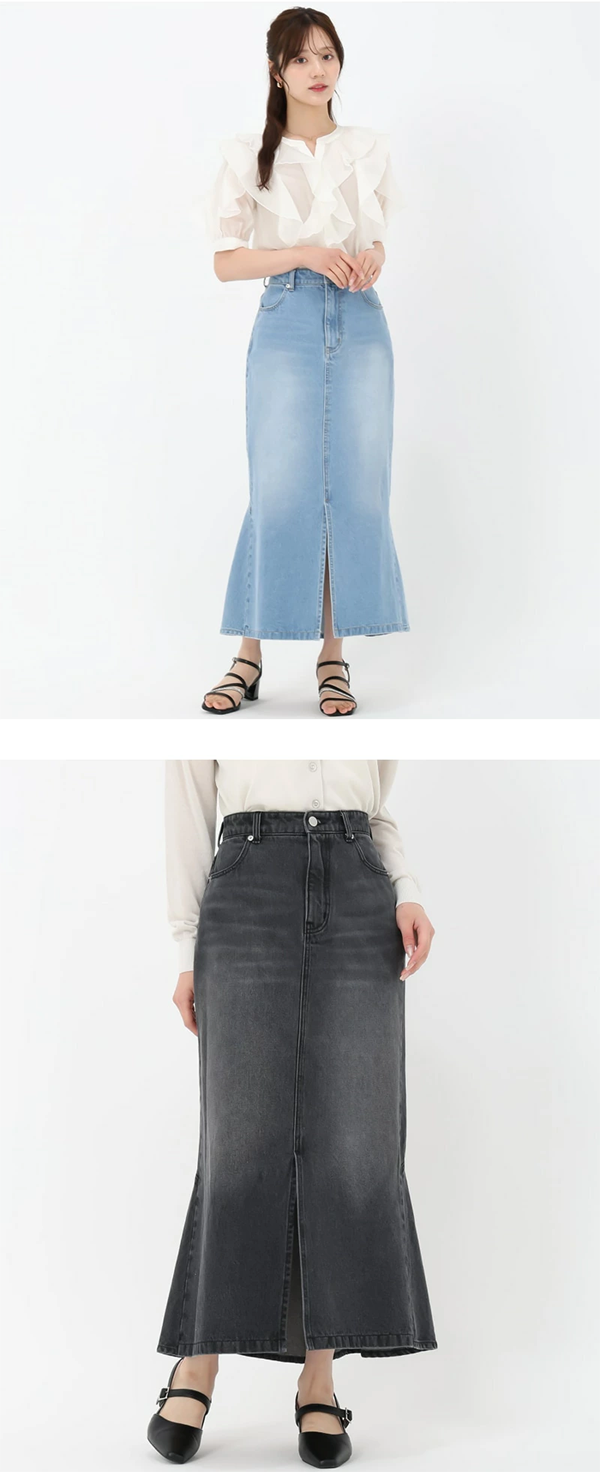 ◎レディース デニムマーメイドスカート ロング Fスリット/ファスナー