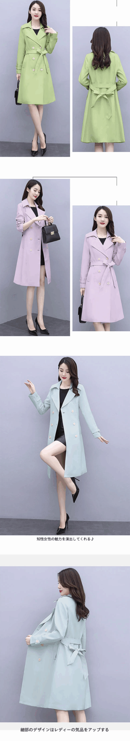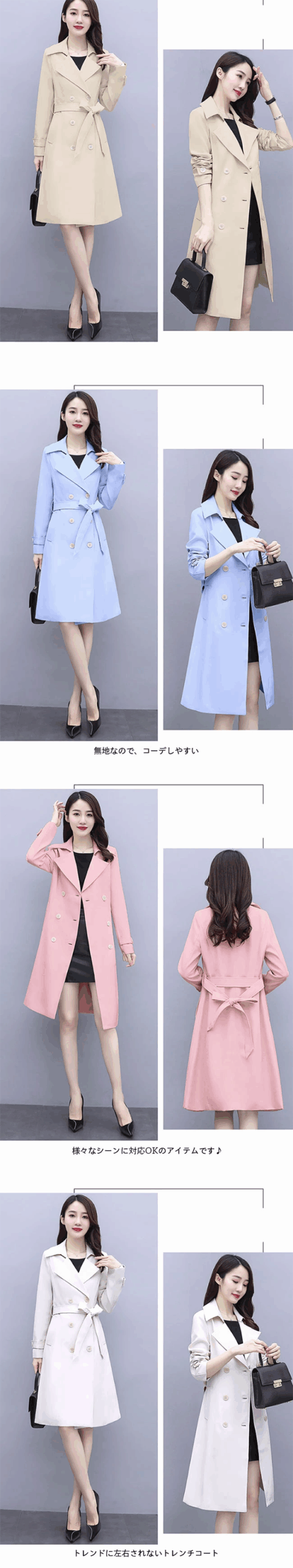 Toggle【商品の説明】レディース トレンチ コート ダブルボタン ロング 無地 HARUSAKURA