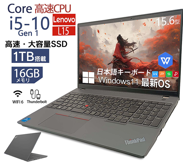 Toggle【商品の説明】中古 ノートパソコン PC レノボ Lenovo ThinkPad L15 Gen1 Windows11 15.6型 CPU 10世代 Core i5-10210U メモリ 8GB/16GB SSD 256GB/512GB/1TB 無線LAN Wi-Fi6 MS Office 2019