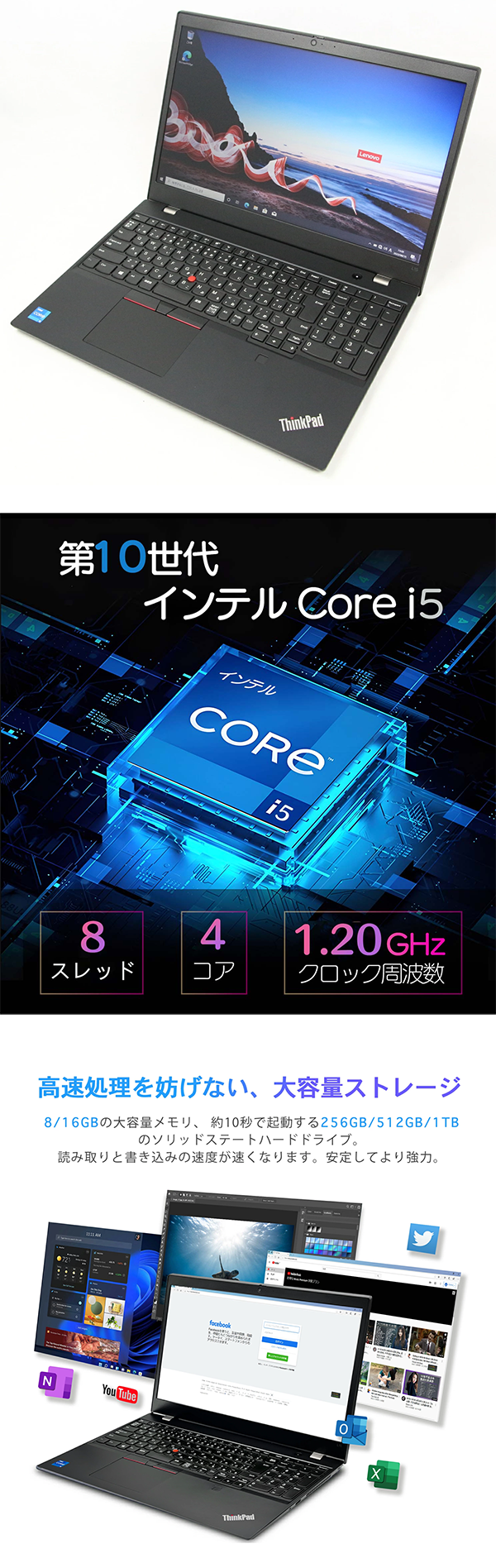 ▶ 楽天市場のサイト: 中古 ノートパソコン PC レノボ ThinkPad L15 Gen1 10世代 Core i5 Windows11 15.6型