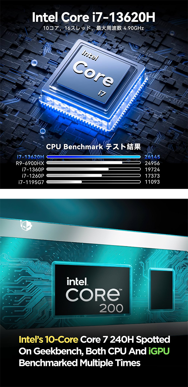 - CPU (選択) インテル Core i7- 13620H プロセッサー/インテル Core7 プロセッサー 240H