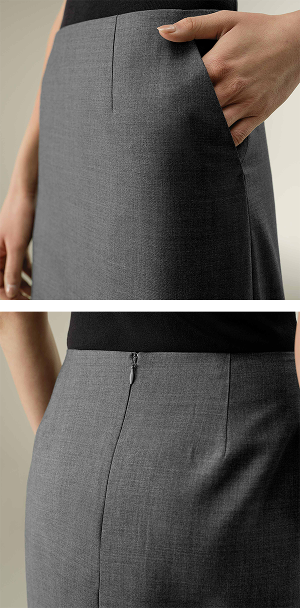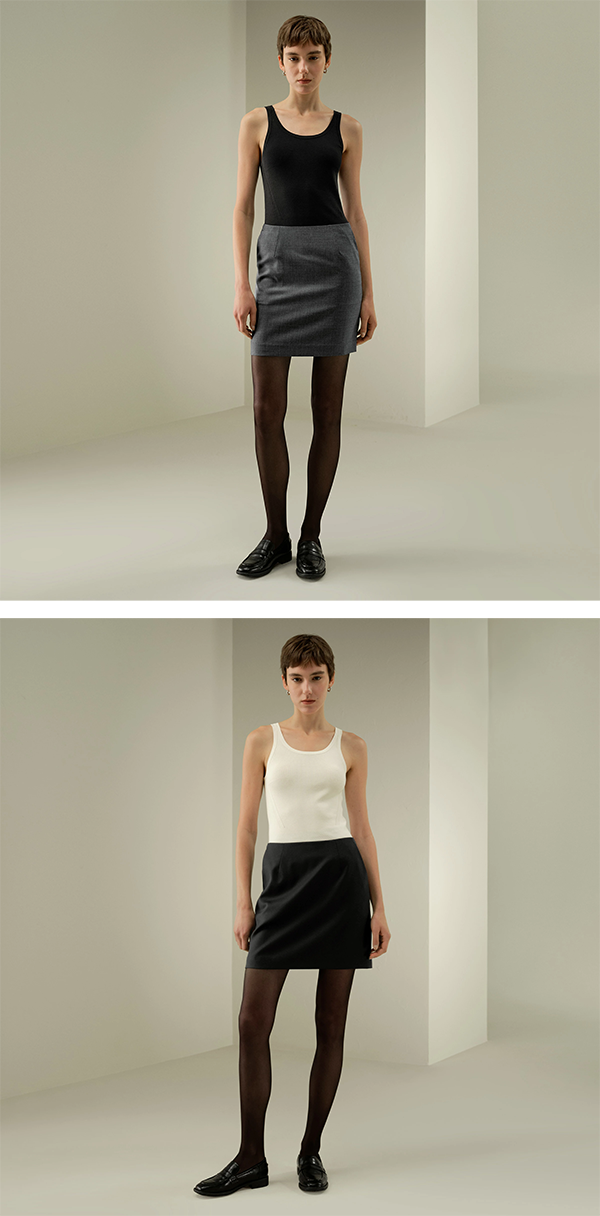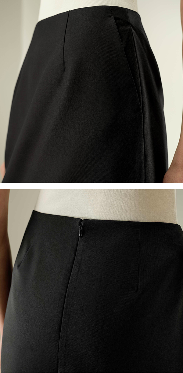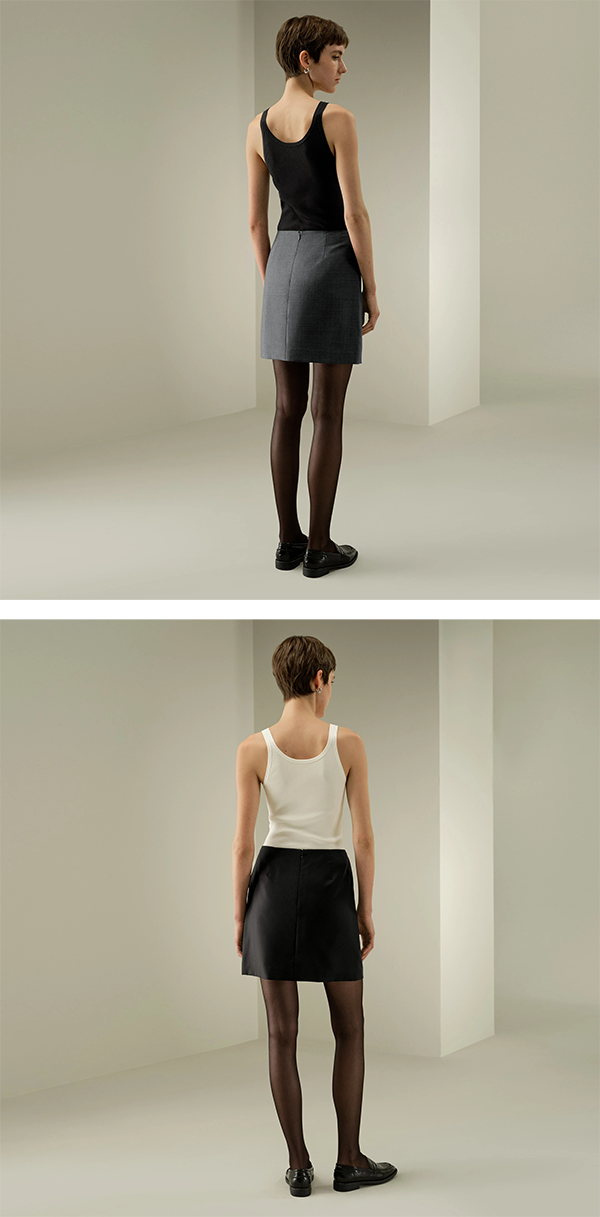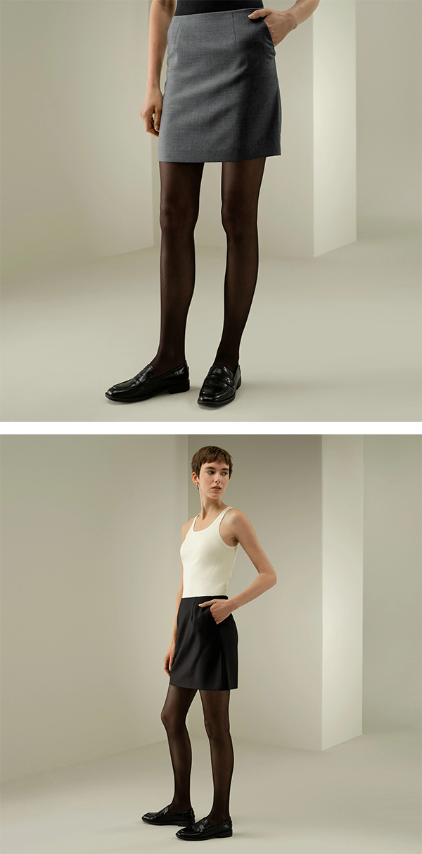 ▶ 上質なシルク・ウール混紡素材で仕立てれたミニタイトスカート