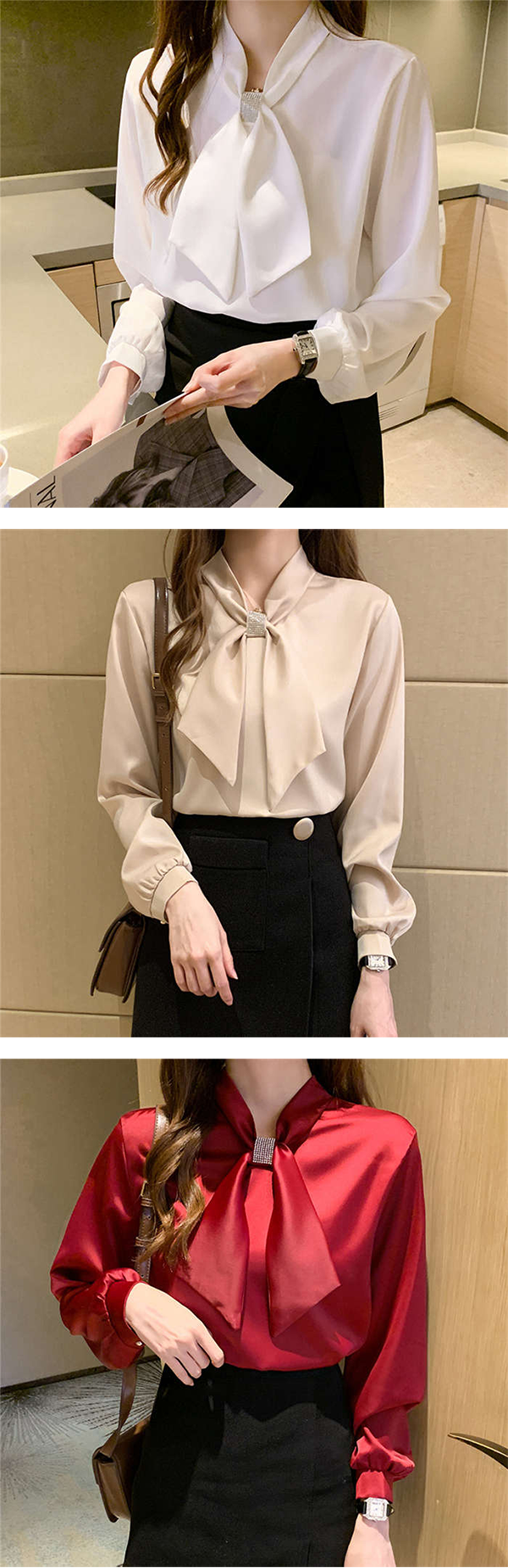 ブラウス レディース きれいめ 40代 春秋新作 オシャレブラウス シルク風シャツ 長袖トップス リボンVネックブラウス 大人 通勤 ゆったり シャツ30代 50代 ホワイト ベージュ レッド 送料無料 |