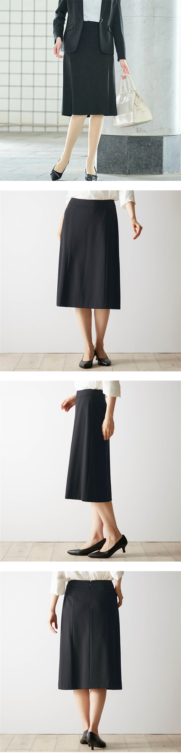 - 前後の縦の切替えがすっきり見えを叶えるややフレアシルエットのスカートです。