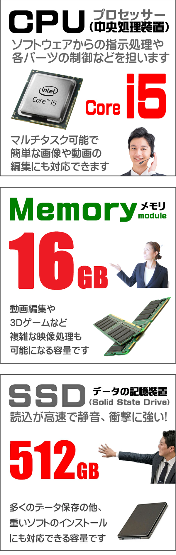 ▶ 高性能 初期設定不要! すぐ使える! 11世代のi5のCPUに、メモリ 16GB SSD 512GB