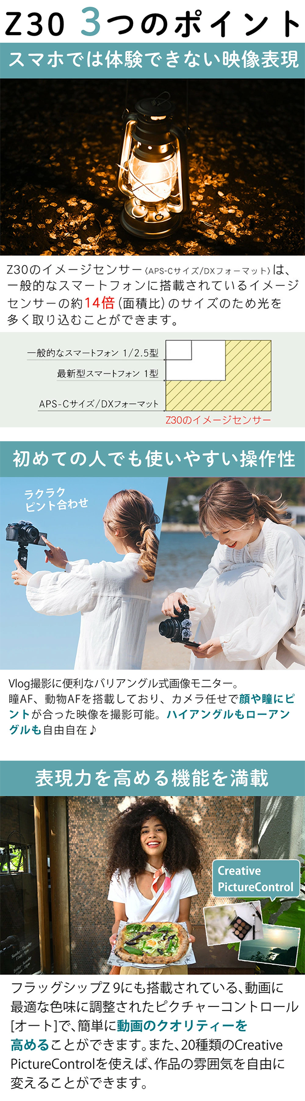 ニコン ミラーレス一眼カメラ Z30 ダブルズームキット ニコン コンパクト 軽量 エントリーモデル VLOG 動画撮影 YouTube おすすめ 運動会 お遊戯会 発表会 入学式 卒業式(ラッピング不可) |