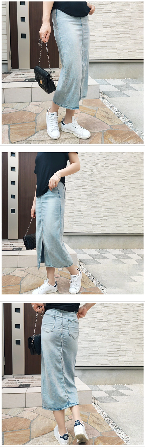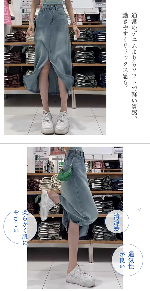 Toggle【商品の説明】レディース デニム タイトスカート 74~76cm丈 フロントスリット フロントファスナー 6-six shop