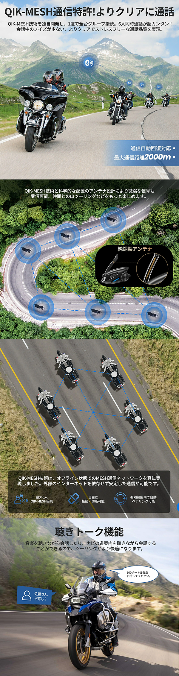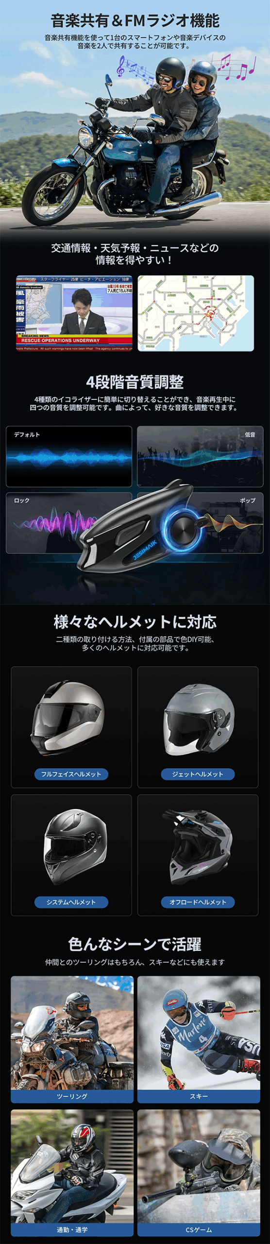 Toggle【商品の説明】バイク インカム 通信 ヘルメット装着 同時通話 X6S JESIMAIK