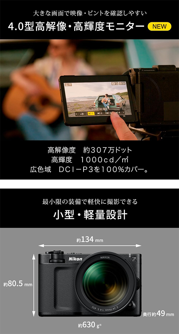 Toggle【商品の説明】新品 ミラーレス一眼カメラ ZR ニコン Nikon 24-70mm
