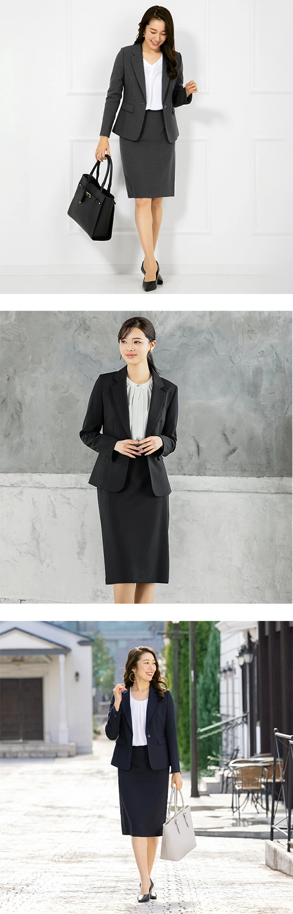 - ビジネススーツの定番として、リクルートスーツとして、レディースの様々なスーツシーンに対応します。