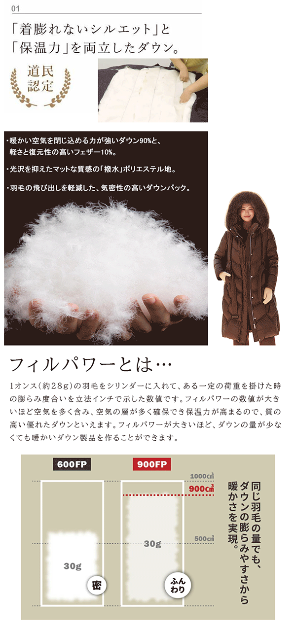 - たっぷりと空気を含んだ上質ダウン90%使用した軽くて、暖かい着心地の1着。