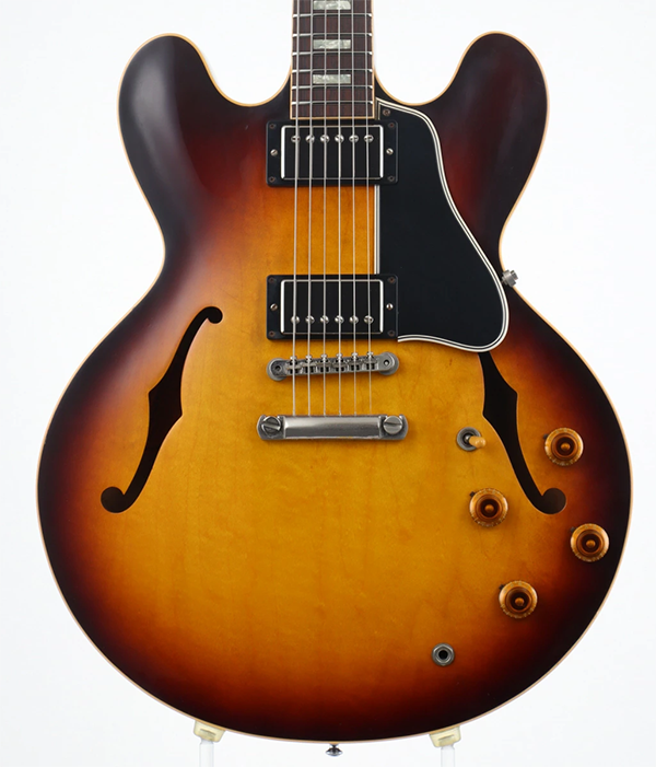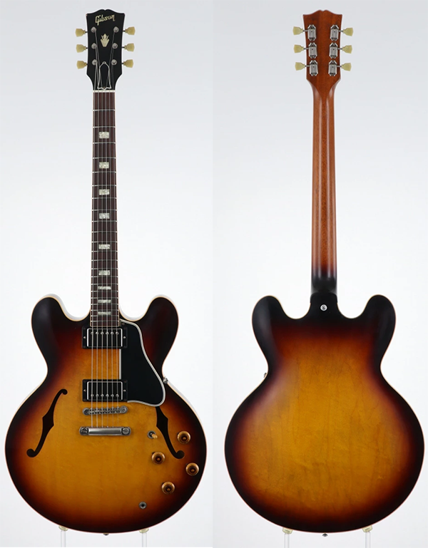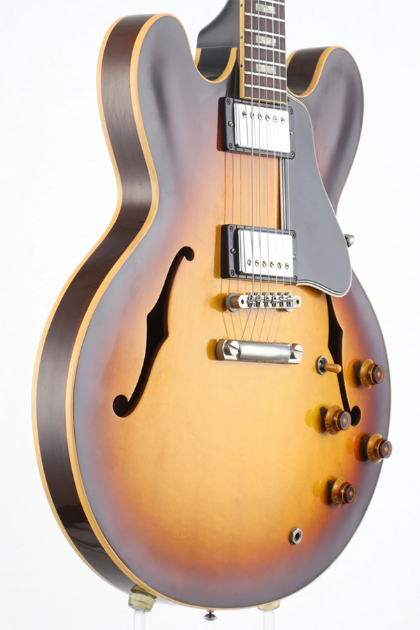 - 1963年製のES-335をリイシューしたモデルで、スリムテーパーネック、ブロック・ポジションマーク、ショートピックガード等の特徴的な仕様が再現されています。