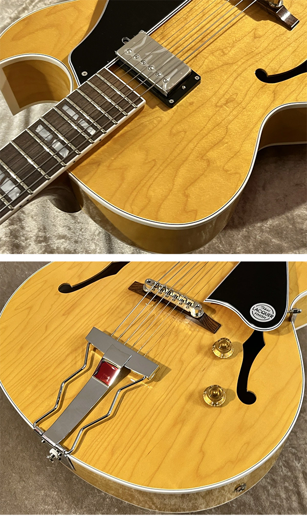 - 通常2ピックアップモデルを1ピックアップ仕様にてカスタムオーダーしたGibson ES-175スタイルのフルアコースティックギターです。