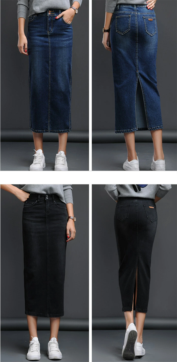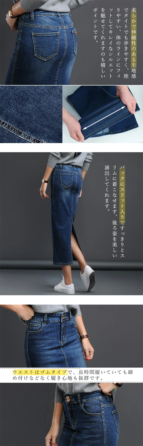 ◎レディース デニム タイト スカート ロング Bスリット Fファスナー