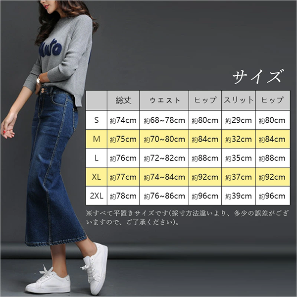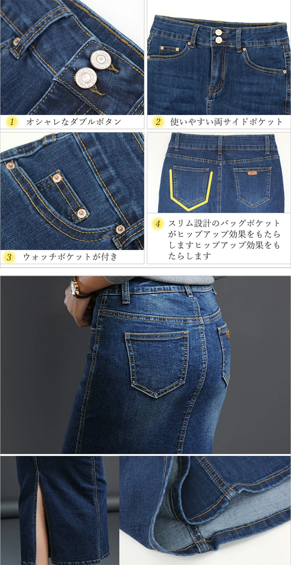 Toggle【商品の説明】レディース デニム タイトスカート 74~78cm丈 バックスリット フロントファスナー 6-six shop