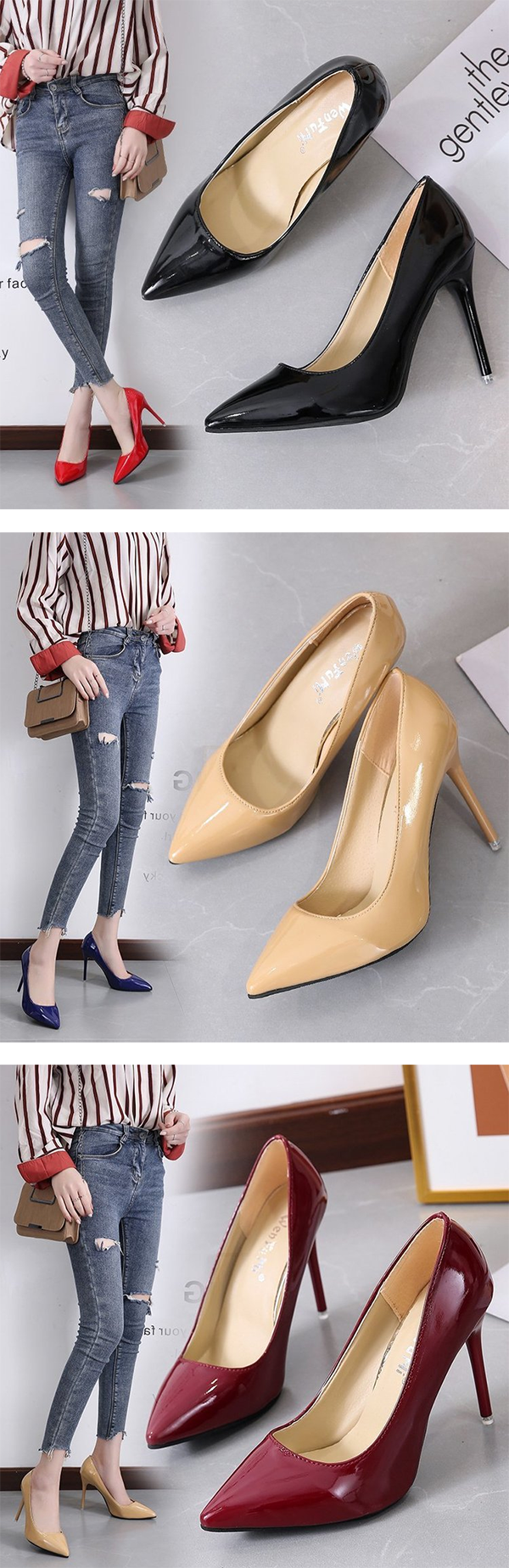 ▶ 楽天市場のサイト: レディース パンプス ポインテッドトゥ エナメル ピンヒール10.5cm ミニョン