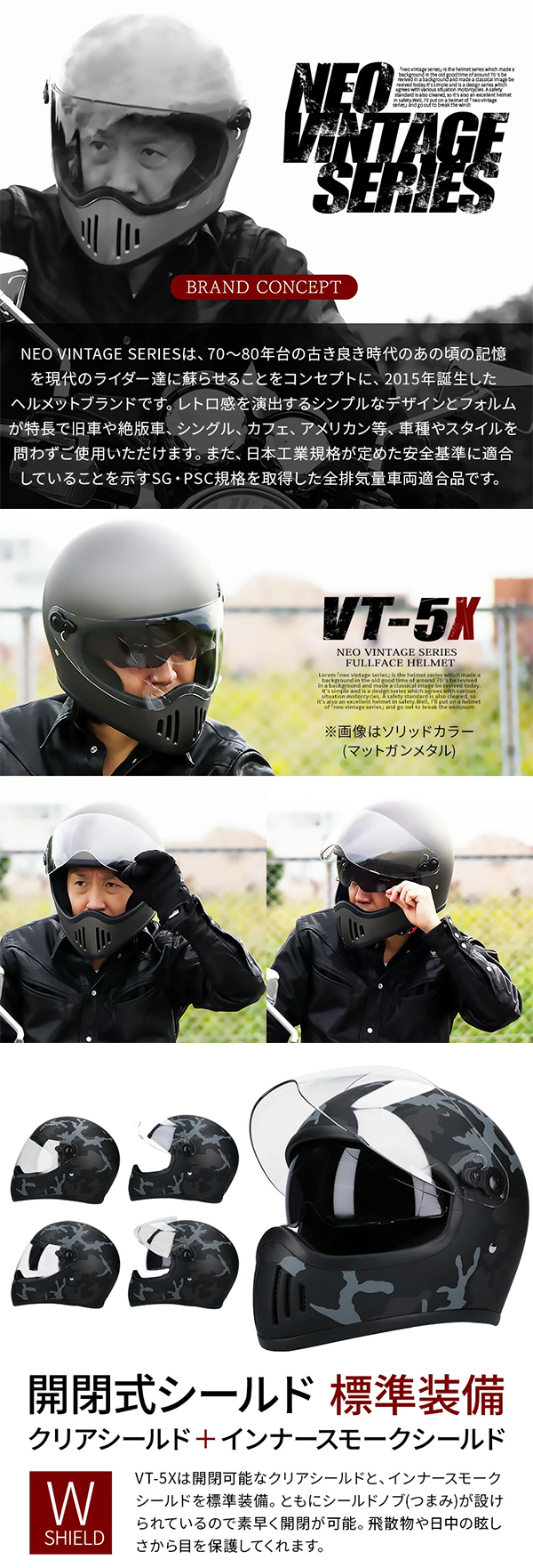 ▶ Amazon サイト: HK フルフェイスヘルメット バイクヘルメット インナーシールド付き SG規格品 NEO VINTAGE VT-5X シティカモフラ [フリーサイズ:57-60cm未満] バイクヘルメット