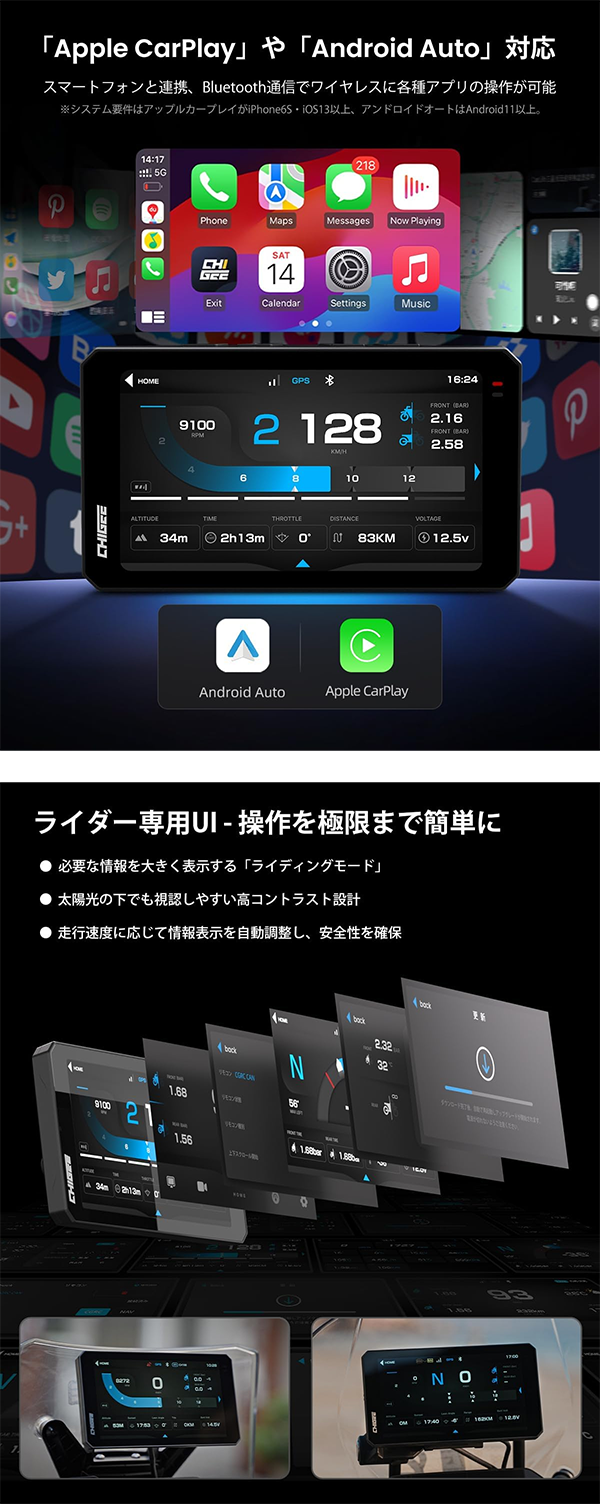 - AIO-6シリーズはCarPlayやAndroid Auto完全対応し、手をハンドルから離さず、通話、ナビ、音楽、通知をスマートに楽しめます。