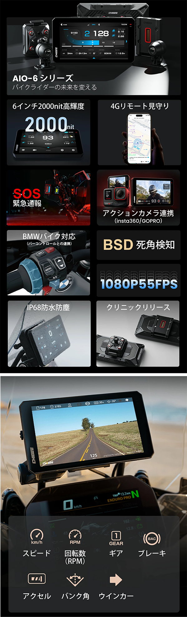 Toggle【商品の説明】バイク スマートモニター ドライブレコーダー AIO-6 AKEEYO