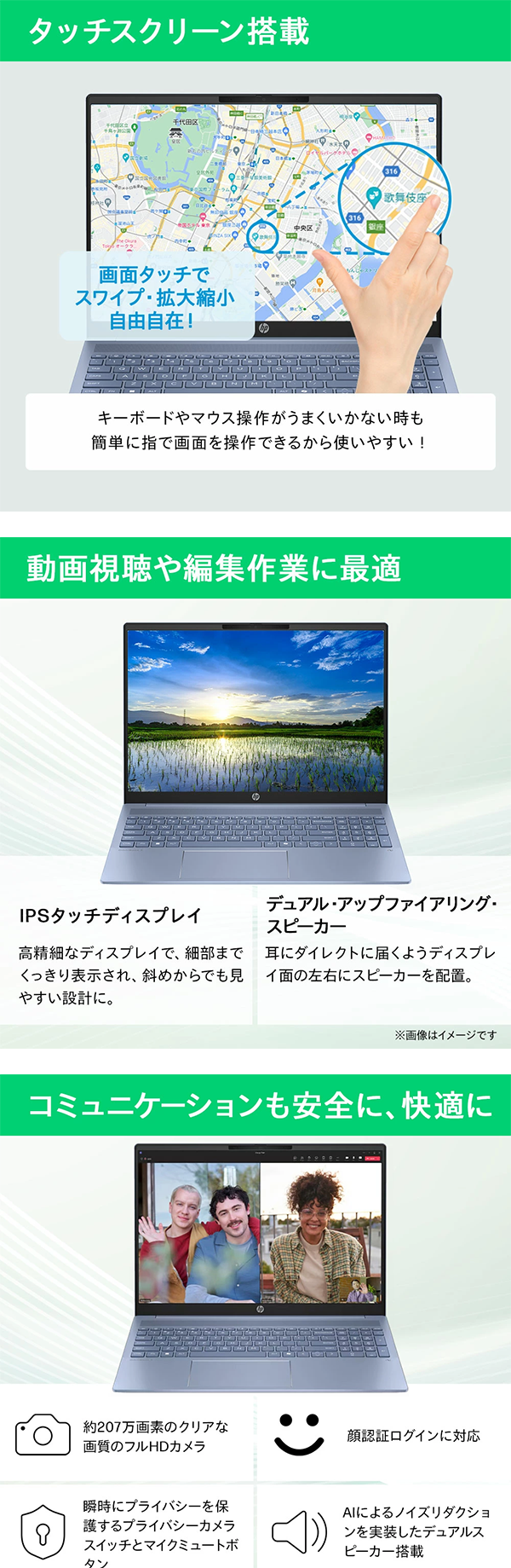 - 誰にも使いやすい、タッチ対応ディスプレイ
