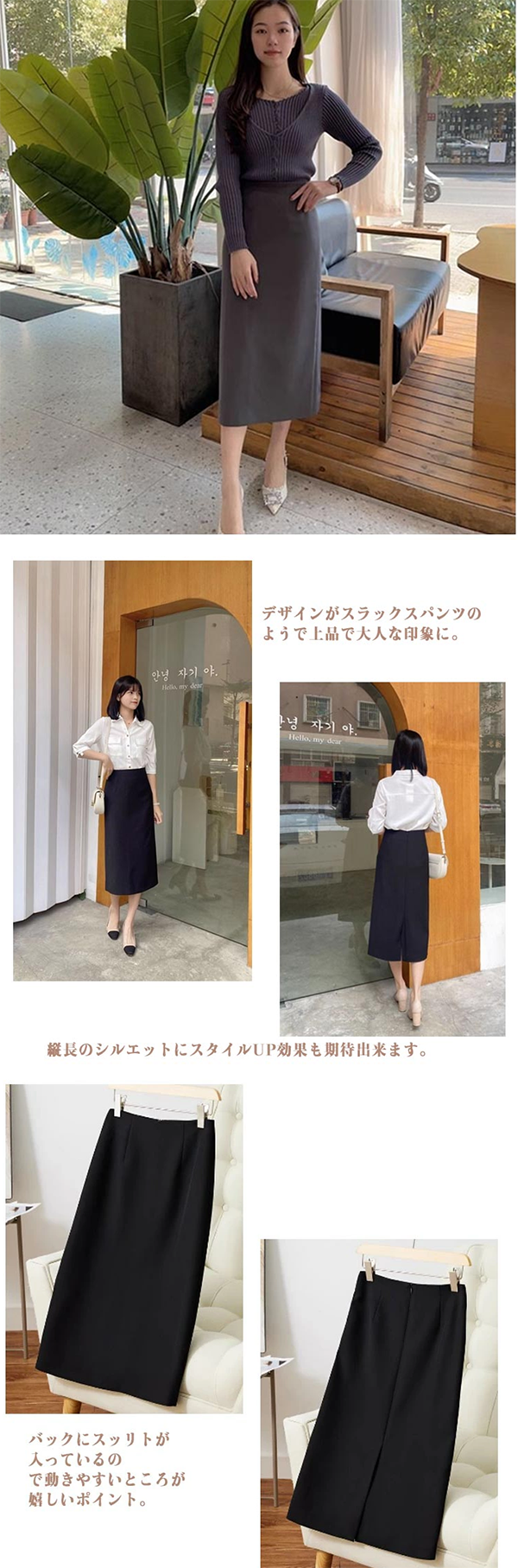 スラックス風 タイトスカート スカート ミモレ丈 ストレートスカート スリット ハイウエスト ロングスカート 着やせ 細見 体型カバー 大人 オフィスカジュアル |