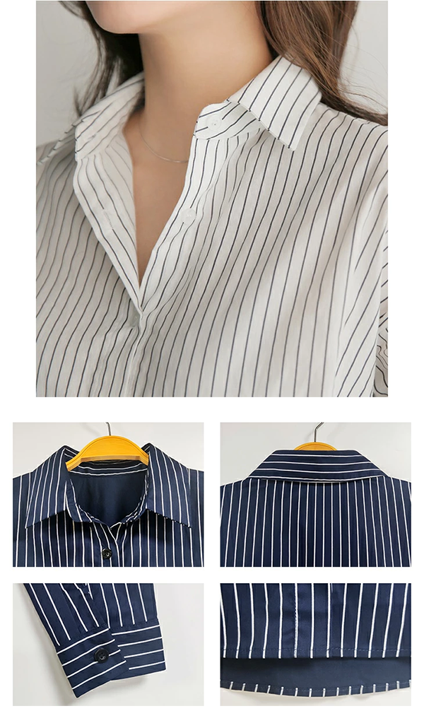 Toggle【商品の説明】レディース ブラウス シャツ 縦ジマ 長袖 ワンピスター