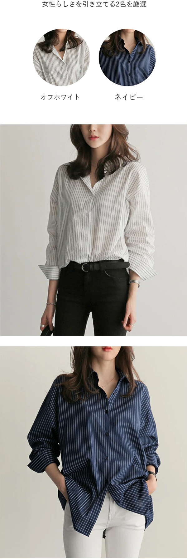 ▶ 楽天市場のサイト: レディース ブラウス シャツ 縦ジマ 長袖 ワンピスター