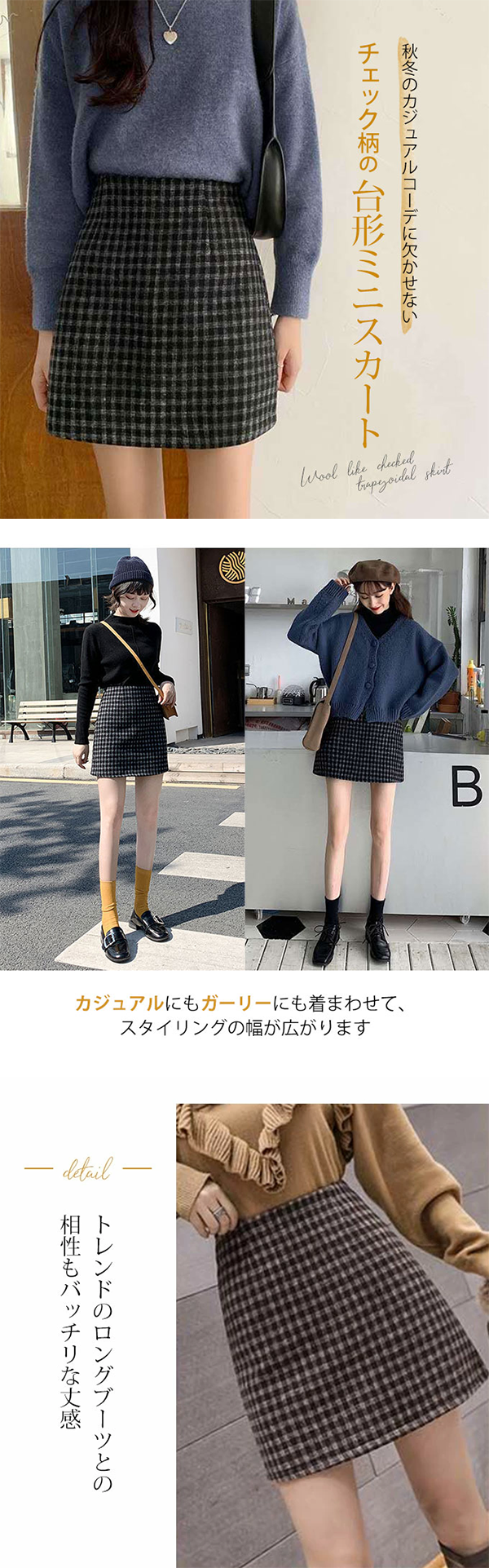 - 秋冬のカジュアルコーデに欠かせない台形のミニスカート。