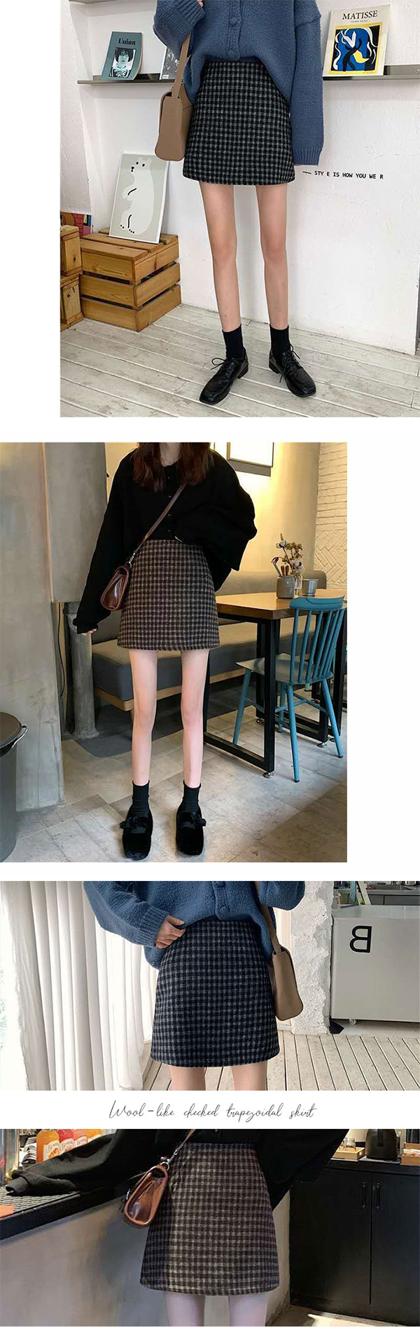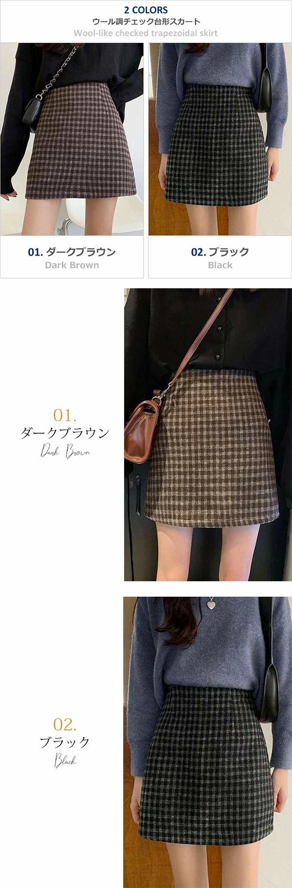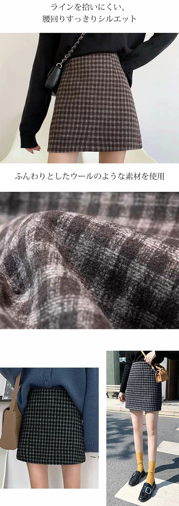 \本日ポイント10倍♪/ スカート 秋冬 ミニスカート 冬 韓国ファッション 台形 チェック ウール調 【メール便送料無料】 かわいい 大きいサイズ ダークブラウン ブラック Mサイズ Lサイズ LLサイズ |