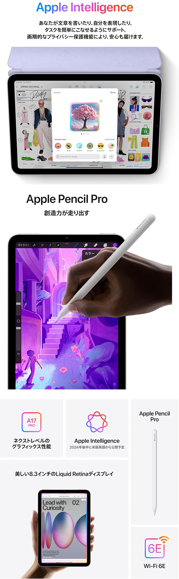 - iPadの楽しさを超ポータブルなボディに。Apple Intelligence を搭載。