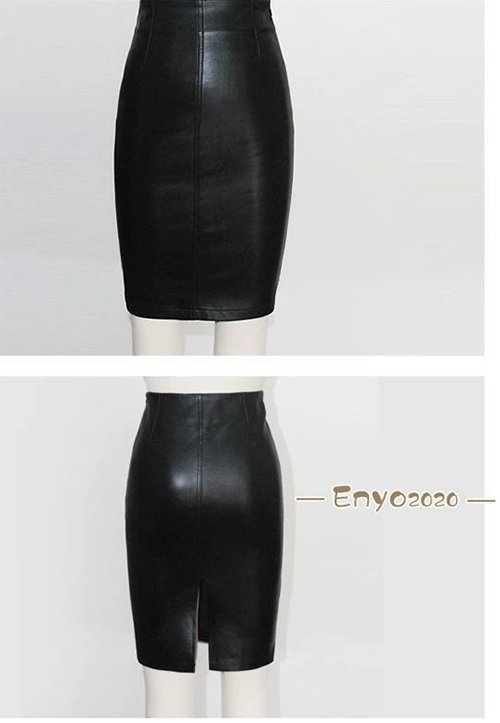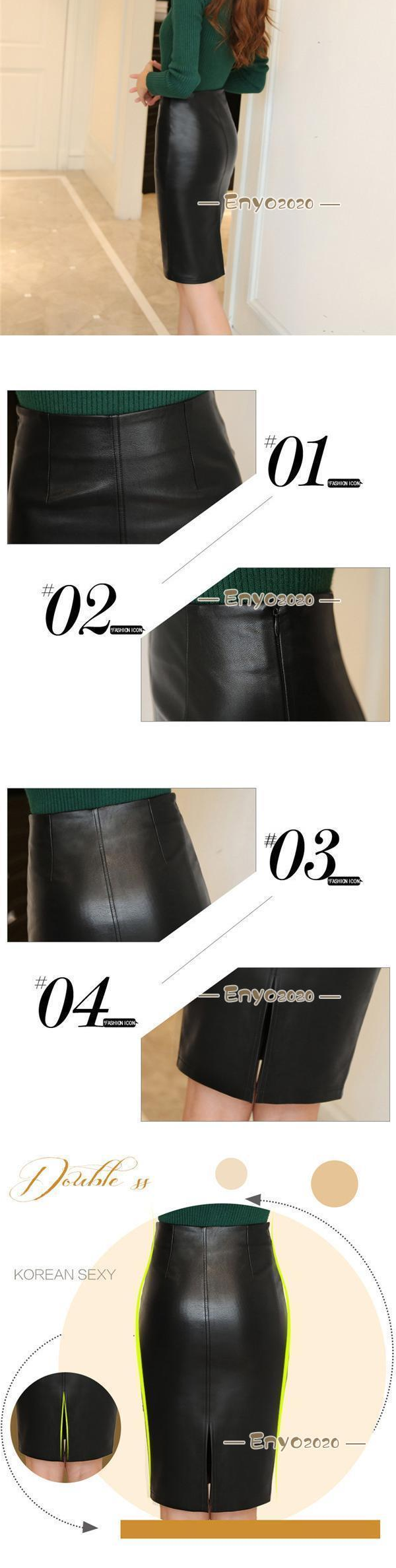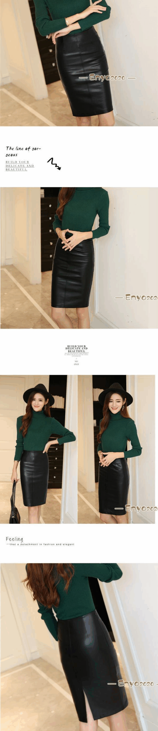 Toggle【商品の説明】レディース フェイクレザー タイトスカート 55~59cm丈 バックスリット サイドファスナー Pleasantday