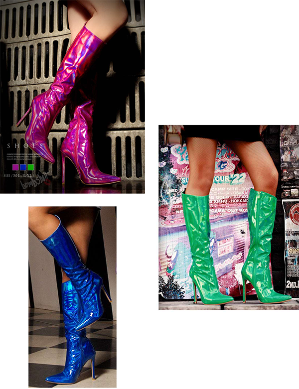 ▶ インパクト抜群なオーロラみたいにキラキラ輝く個性派インポートロングブーツ♪