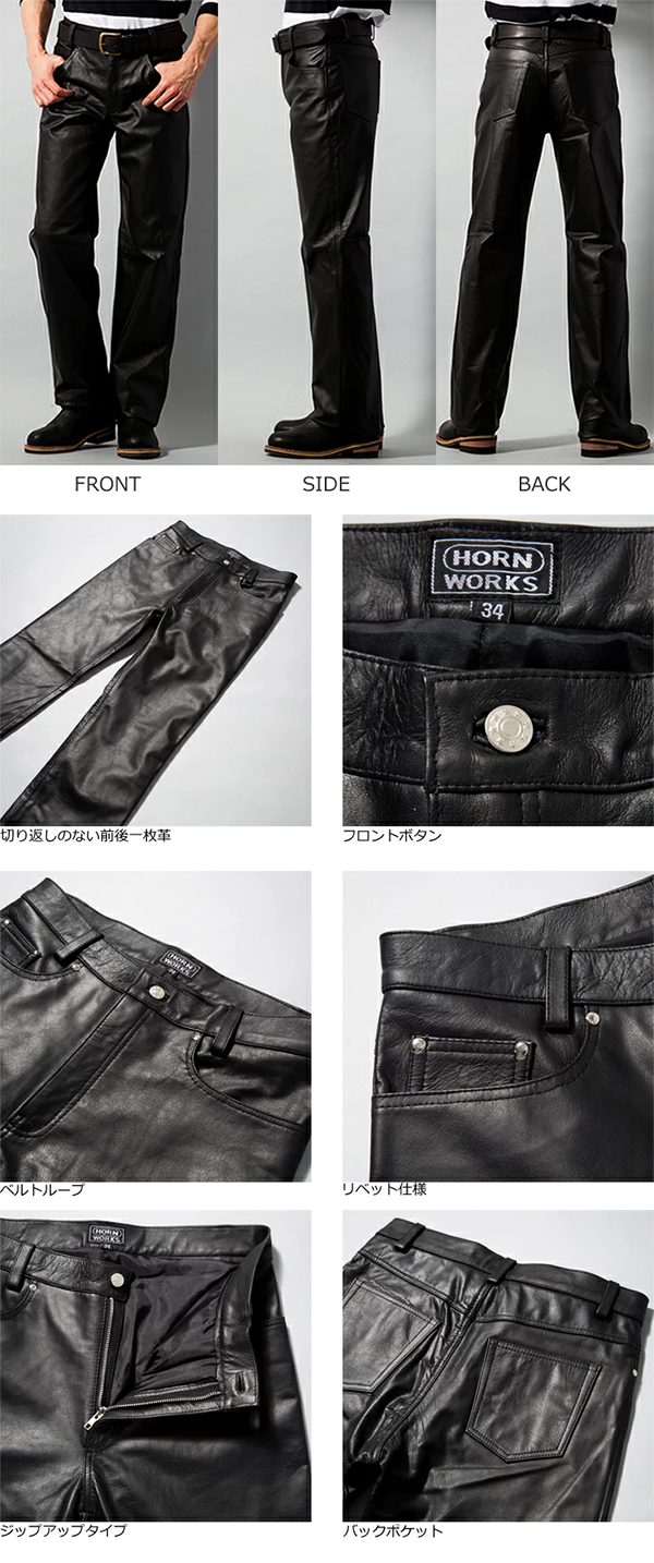 ▶ 楽天市場のサイト: メンズ ライダース 本革 レザー パンツ Horn Works