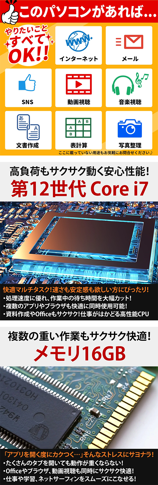 ▶ 第12世代Core i7のデスクトップPC 22型モニター付き