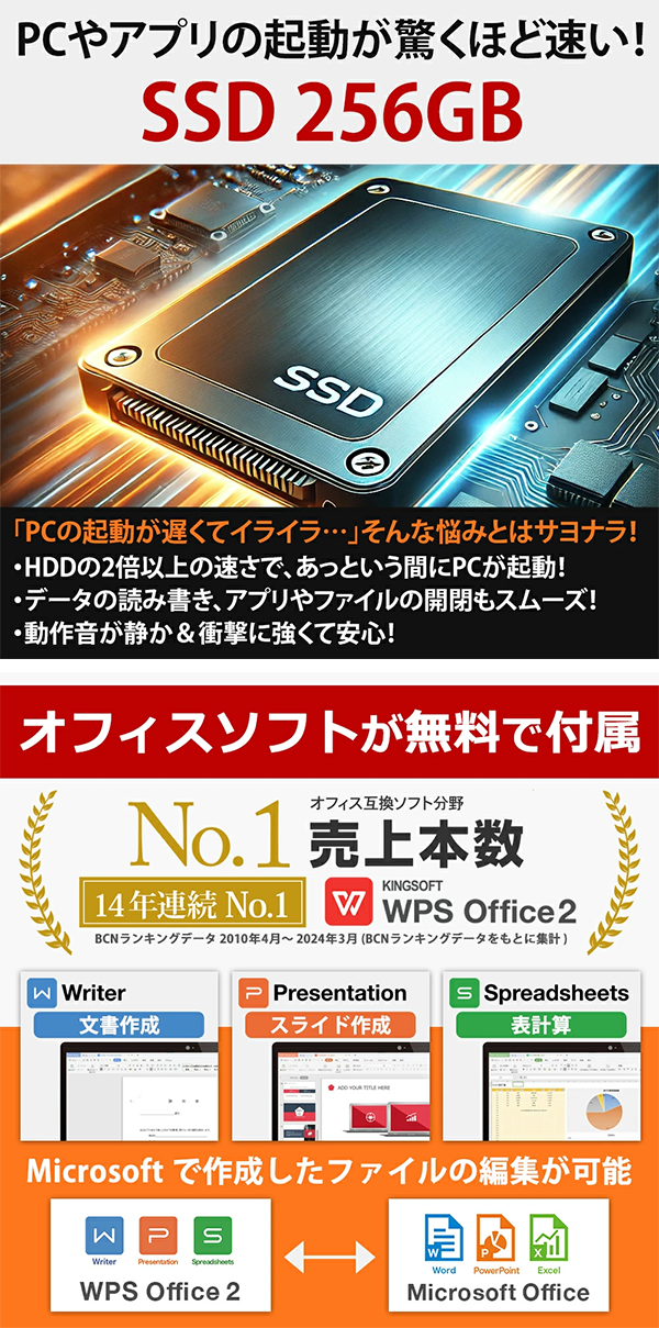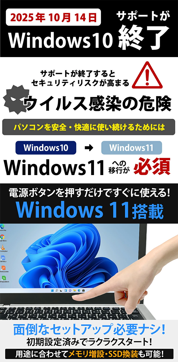 - 無線LAN 無し ※オプションで「USB無線LAN+Bluetoothコンボアダプタ」を選べます。