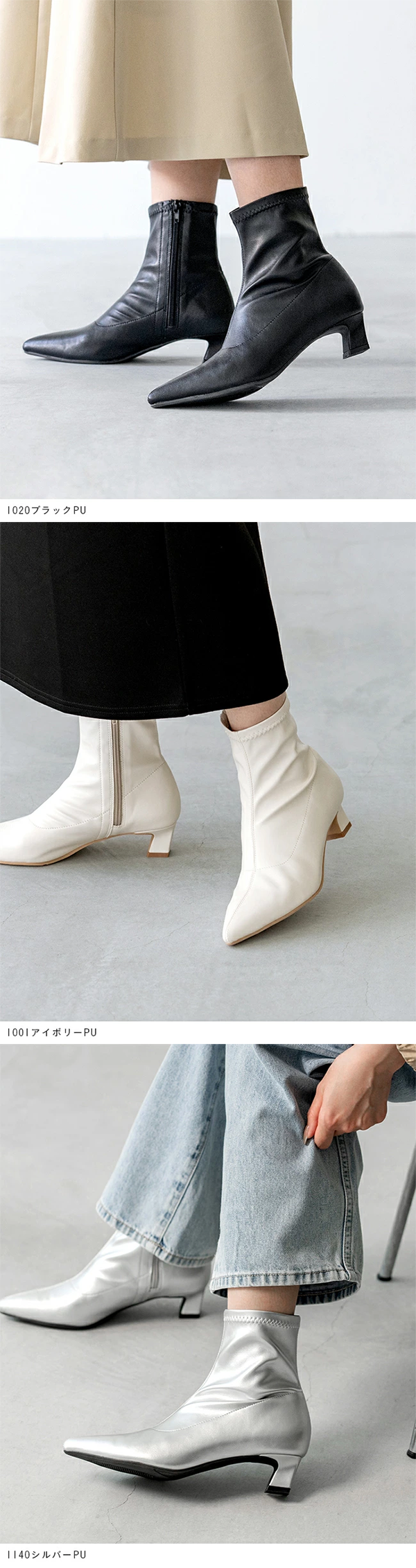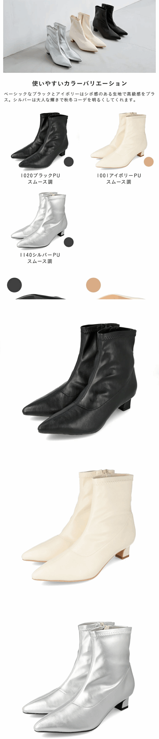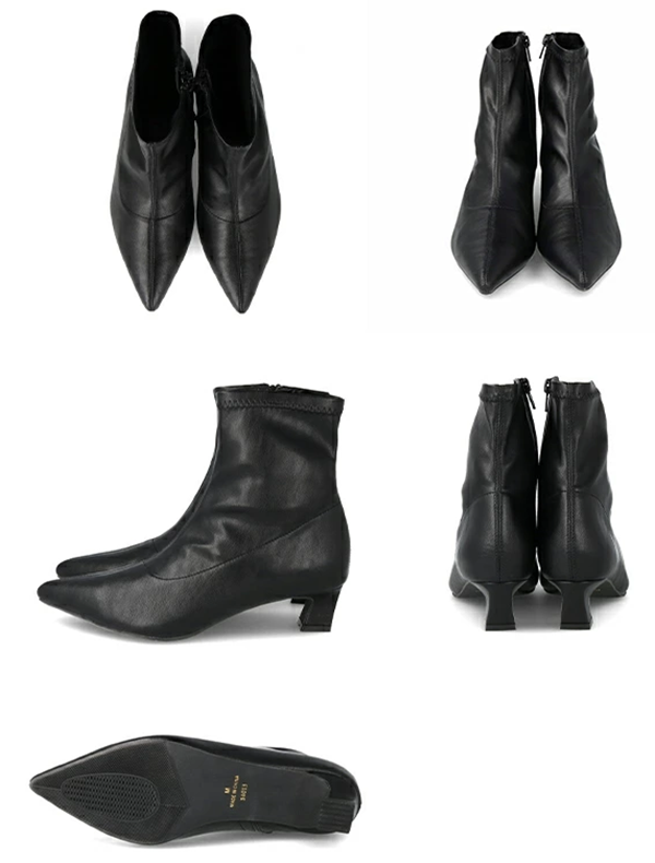 ◎レディース ショート ブーツ ポインテッドトゥ スムース 4cmヒール