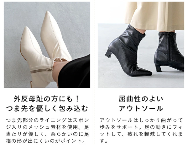 - 窮屈感のない履き心地で、すっきりとした美脚に見せてくれます。