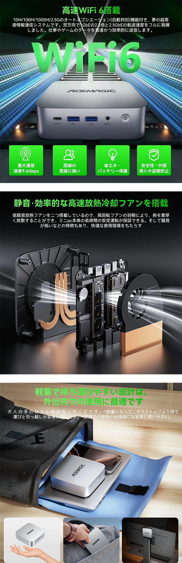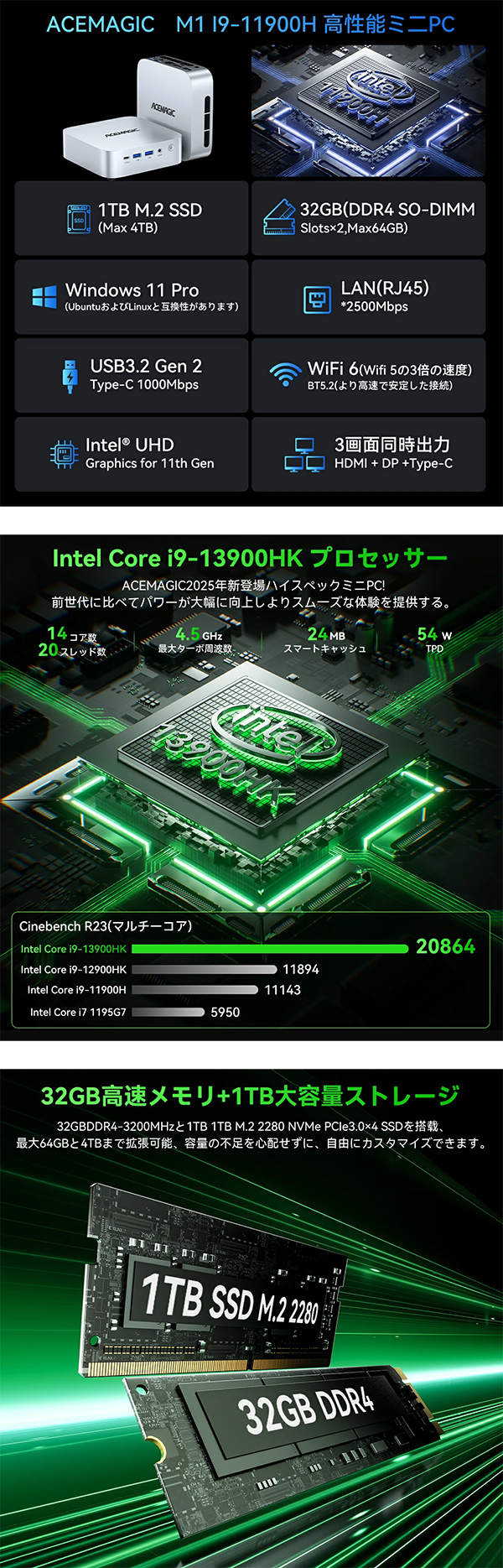 Toggle【商品の説明】新品 ミニデスクトップパソコン PC ACEMAGIC M1 Windows11 CPU Intel Core i9-11900H メモリ 32GB SSD 1TB 無線LAN Wi-Fi6 モニター なし 3画面出力