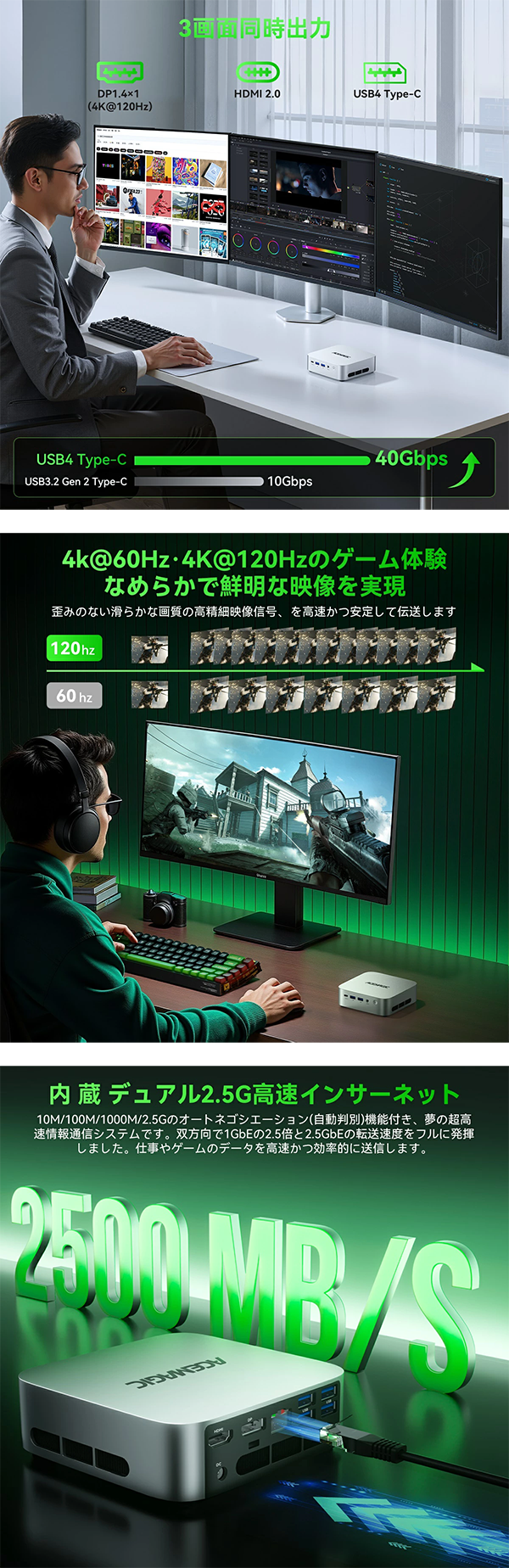 - 映像出力 3画面同時出力可能【HDMI2.0+DP1.4+TYPE-C(4K@60Hz)】