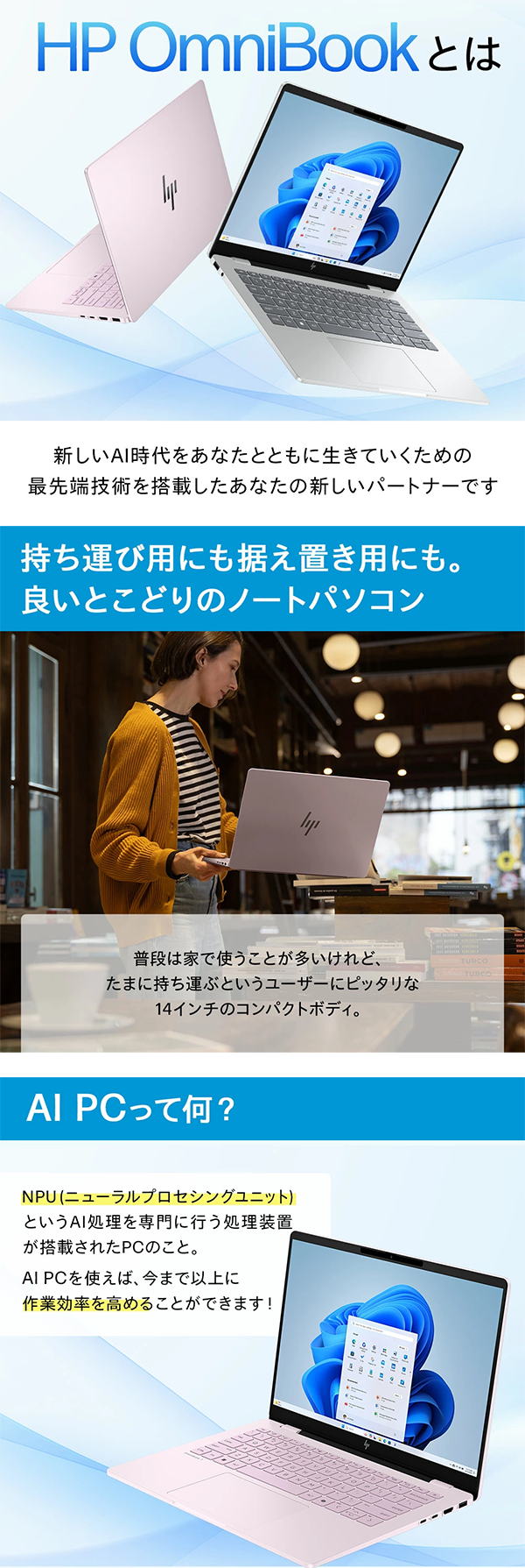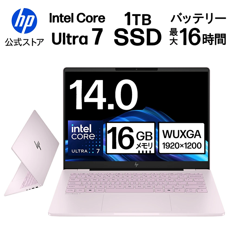 【公式・メーカー直販・送料無料】ノートパソコン office付き 新品 HP OmniBook 7 14-fr 14インチ Windows11 Core Ultra7 255U 16GB 1TB WUXGA 非光沢 IPS SAKURA ピンク 1年保証 (型番: BK9P0PA) |