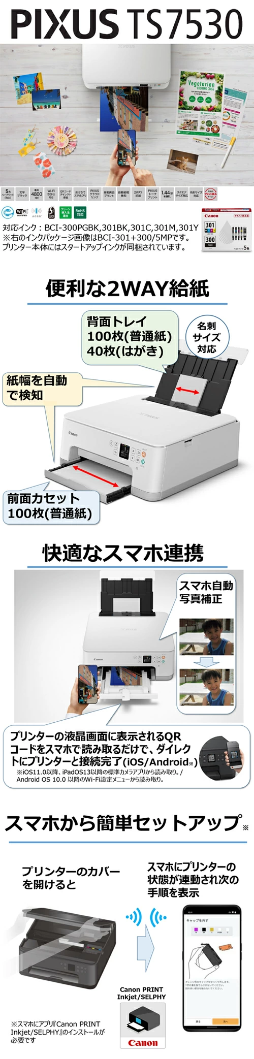 ▶ Amazonのサイト: キヤノン Canon プリンター A4インクジェット複合機 PIXUS TS7530 ホワイト 2021年モデル テレワーク向け 5色・独立型・対応インクBCI-300/301シリーズ