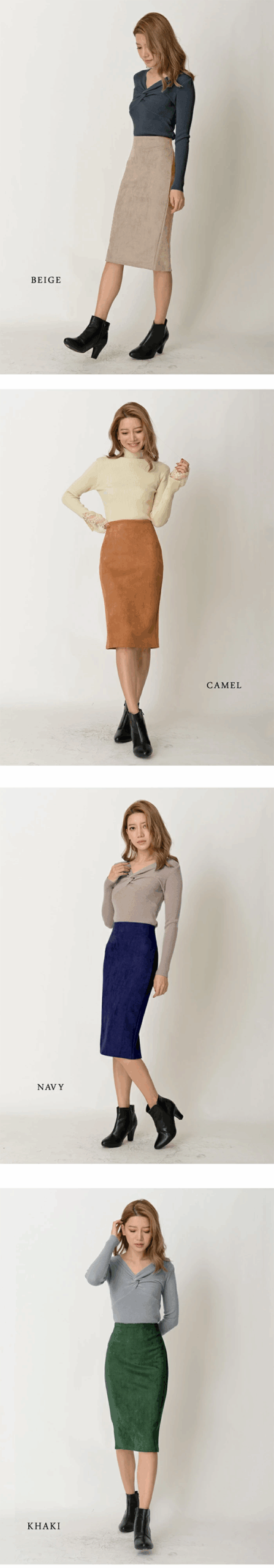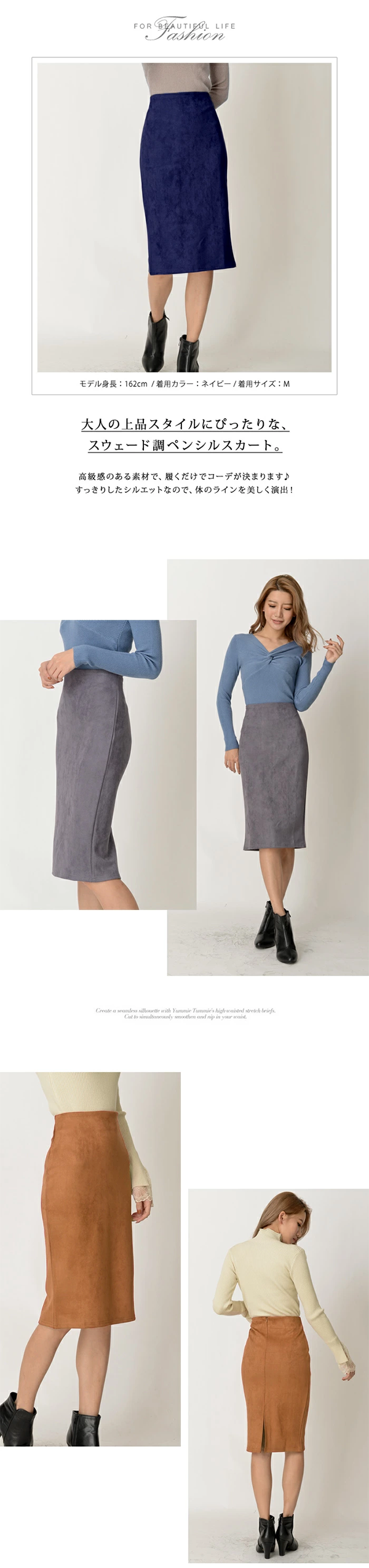 Toggle【商品の説明】レディース スウェード タイトスカート ひざ丈 60cm丈 バックスリット バックファスナー KOEISTORE