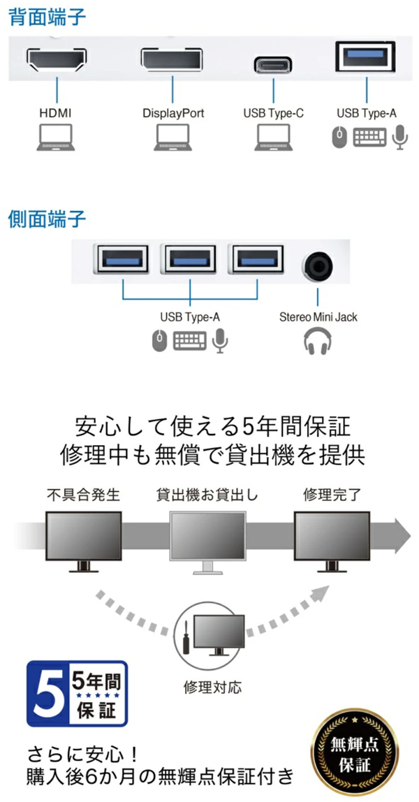 - USB Type-C、DisplayPort、HDMI端子搭載、さまざまなPCと接続可能!