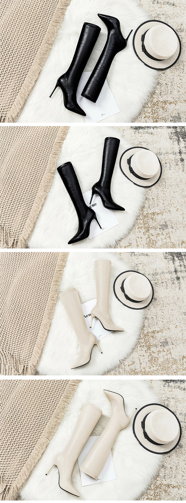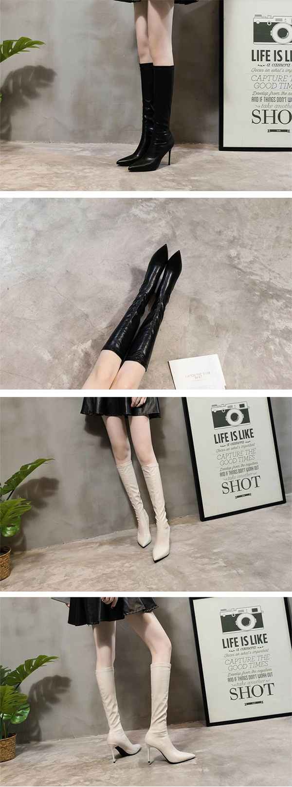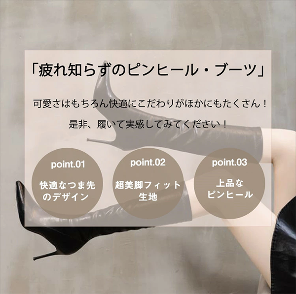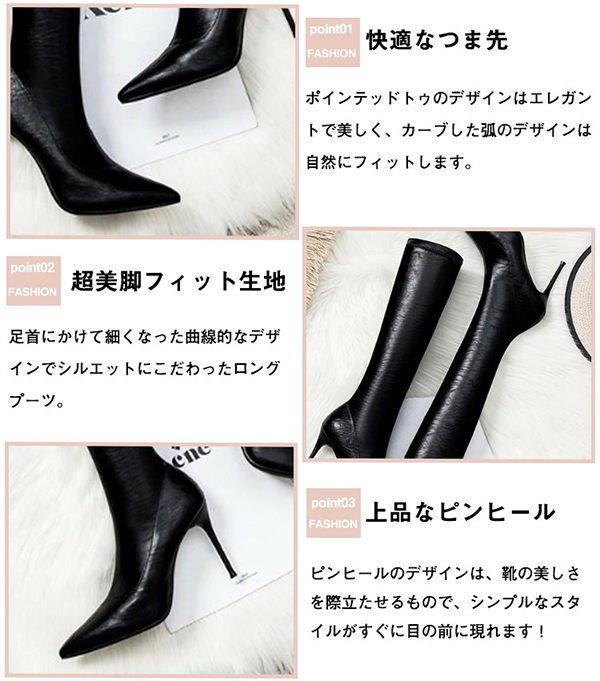 ▶ 楽天市場のサイト: レディース ロング ブーツ PUレザー ポインテッドトゥ ピンヒール8cm スピルホープ