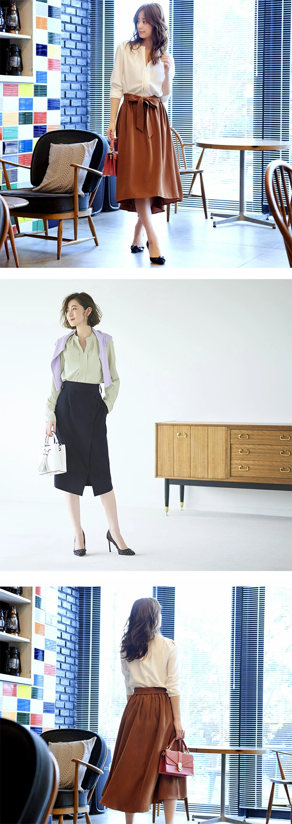 - シャープな中に抜け感を出したブラウス・シャツは今のオフィイススタイルにトレンド感をプラスします。