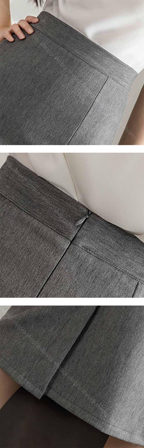 - 後ろジップ付きのスカート、着脱ぎは楽々。