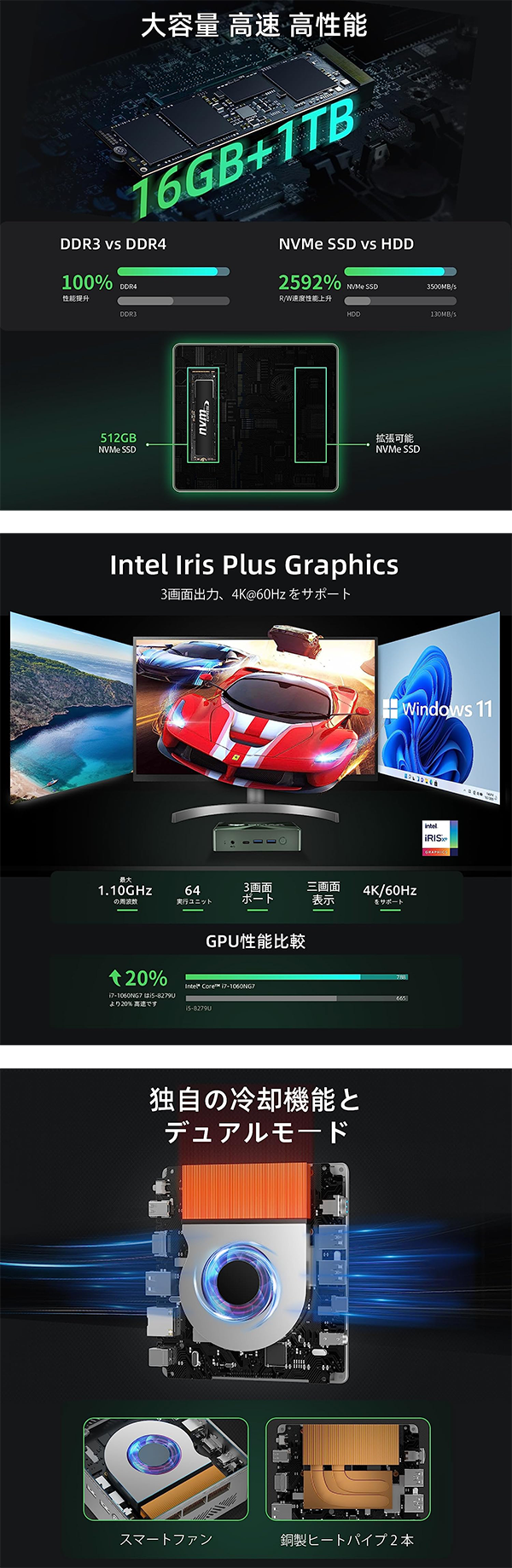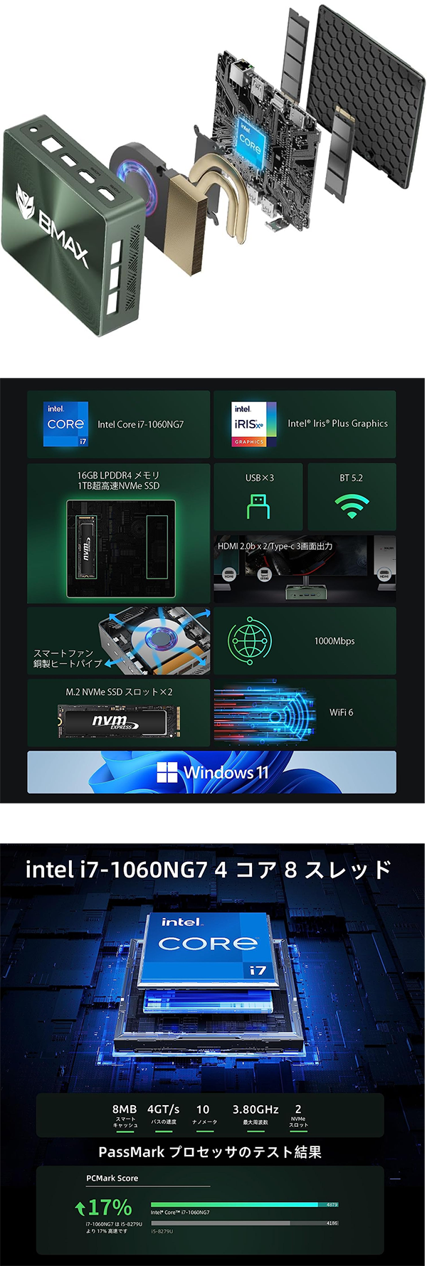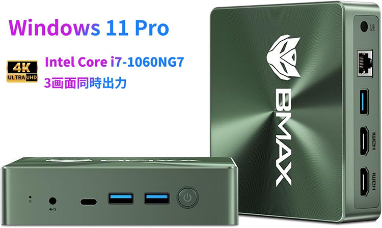 ▶ 【BMAX MiniPC】10世代 Core i7-1060NG7 メモリ 16GB SSD 1TB