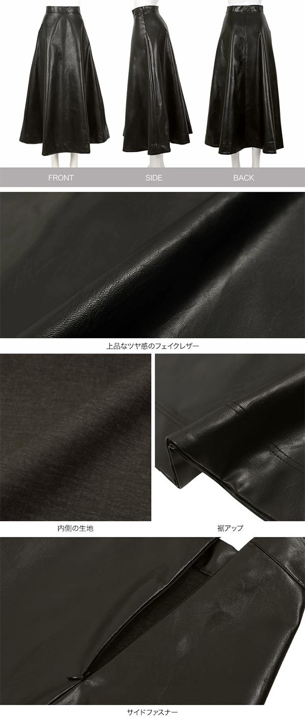 ▶ 楽天市場のサイト: レディース フェイクレザー Aライン フレアスカート マキシ丈 60cm丈 サイドファスナー 神戸レタス